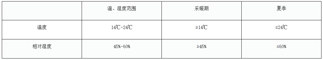 國(guó)家檔案局《檔案庫房技術(shù)管理暫行規(guī)定》對(duì)檔案庫房(也適用于機(jī)關(guān)檔案室)溫濕度要求做了如下明確界定:檔案庫房(含膠片室、磁帶室)的溫度應(yīng)控制在14~24℃,有設(shè)備的庫房日變化幅度不超過2℃,相對(duì)濕度應(yīng)控制在45~60%,有設(shè)備的庫房日變化幅度不超過±5%。